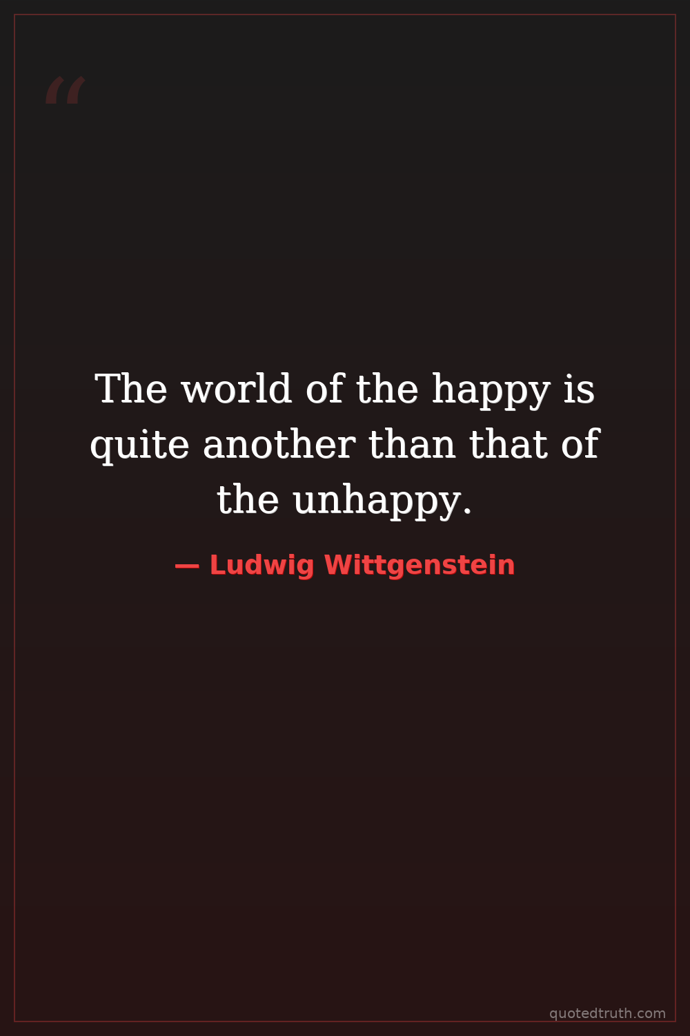 The world of the happy is quite another than that of the unhappy.