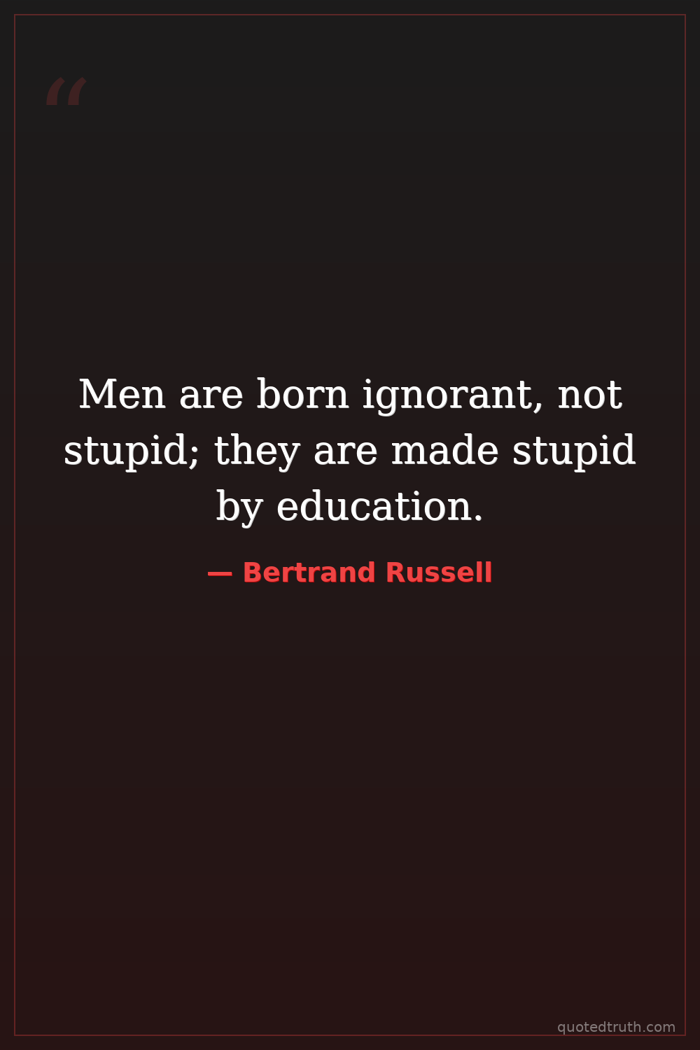 Men are born ignorant, not stupid; they are made stupid by education.