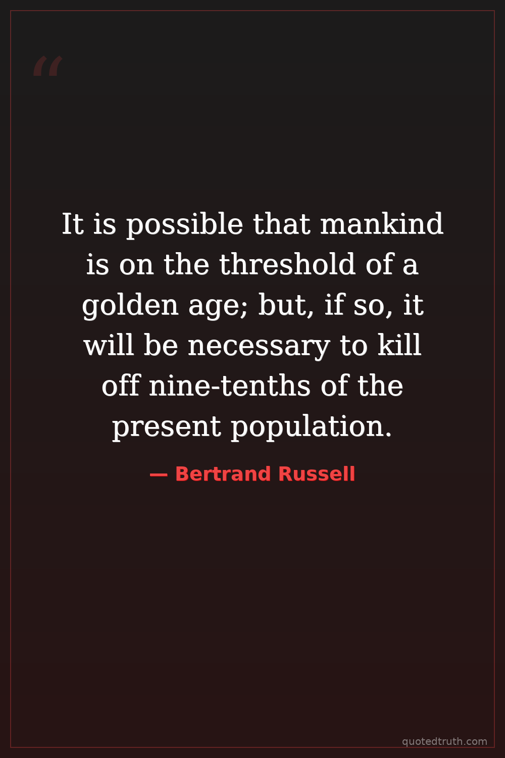 It is possible that mankind is on the threshold of a golden age; but, if so, it will be necessary to kill off nine-tenths of the present population.