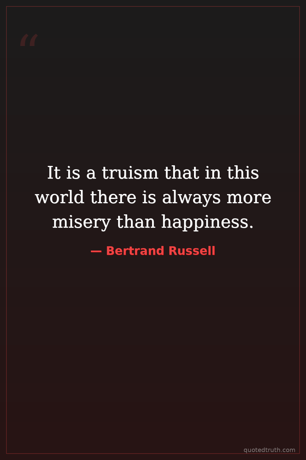 It is a truism that in this world there is always more misery than happiness.