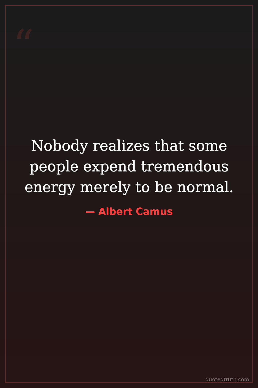 Nobody realizes that some people expend tremendous energy merely to be normal.