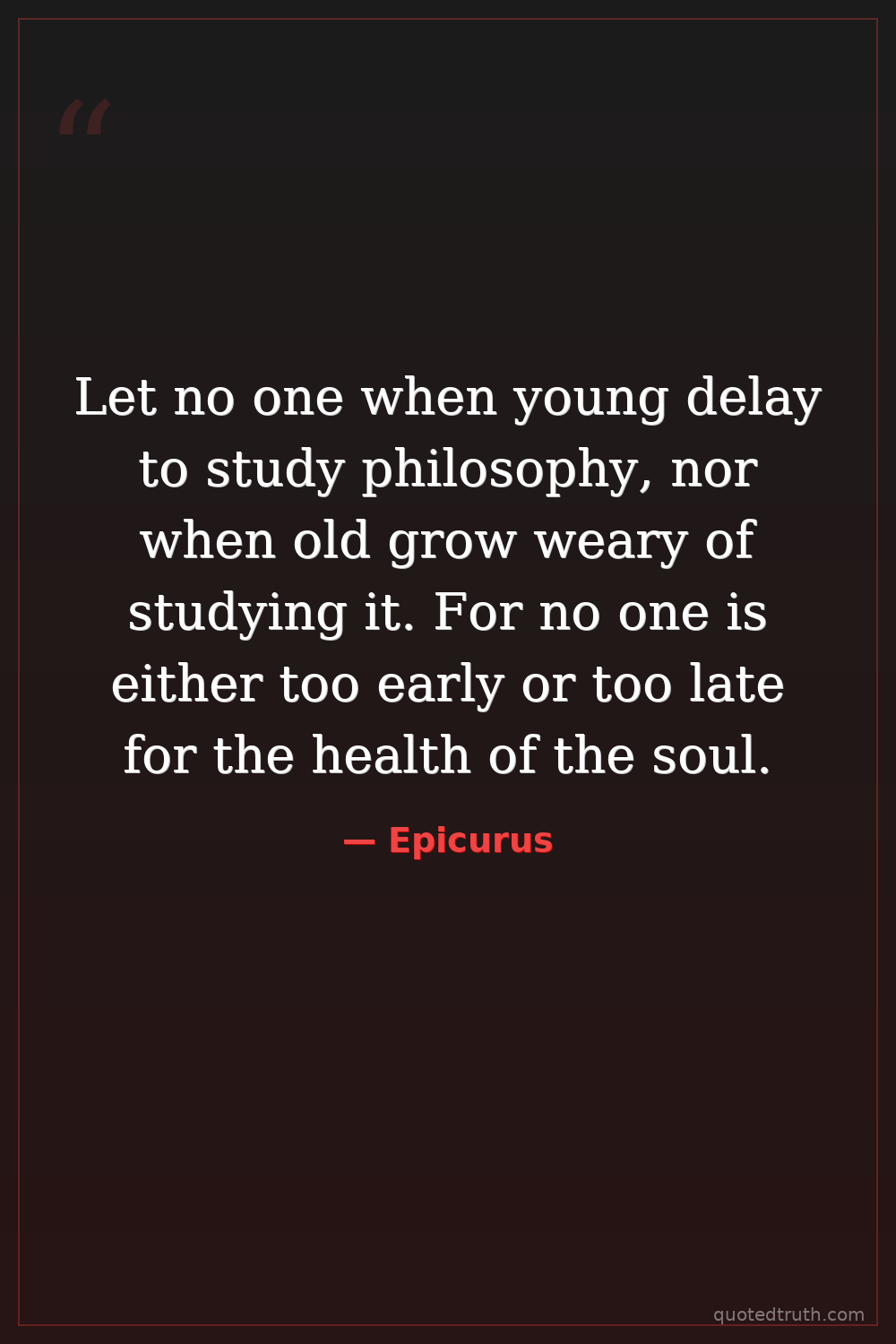Let no one when young delay to study philosophy, nor when old grow weary of studying it. For no one is either too early or too late for the health of the soul.