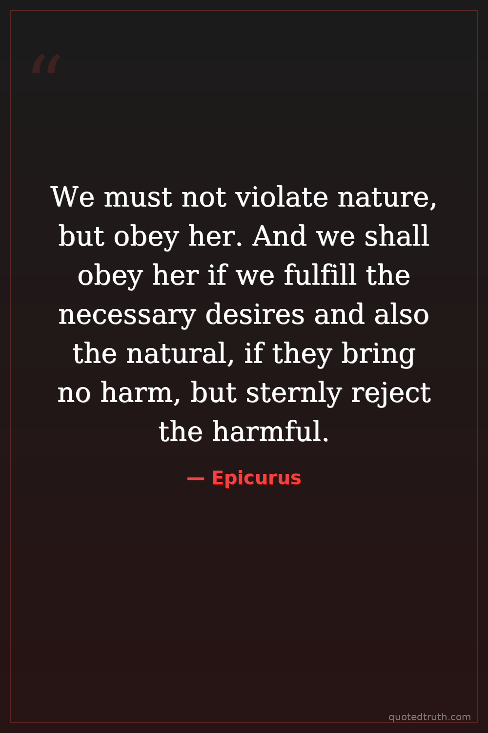 We must not violate nature, but obey her. And we shall obey her if we fulfill the necessary desires and also the natural, if they bring no harm, but sternly reject the harmful.