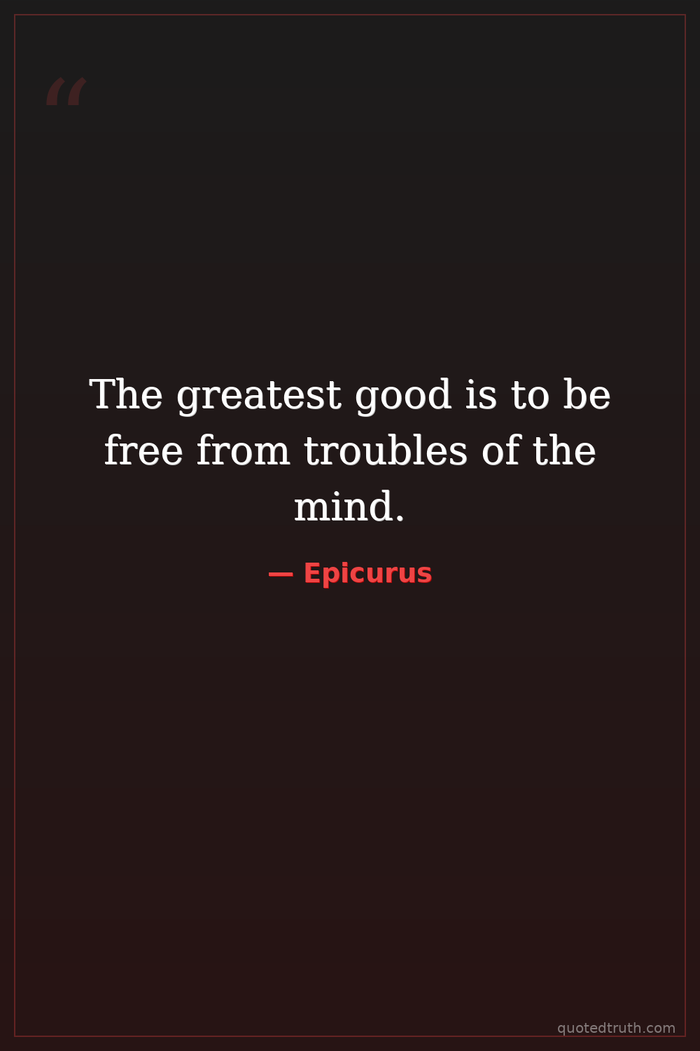 The greatest good is to be free from troubles of the mind.