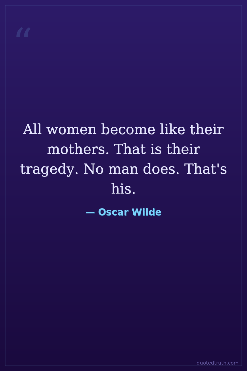 All women become like their mothers. That is their tragedy. No man does. That's his.
