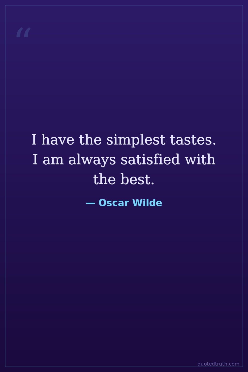 I have the simplest tastes. I am always satisfied with the best.