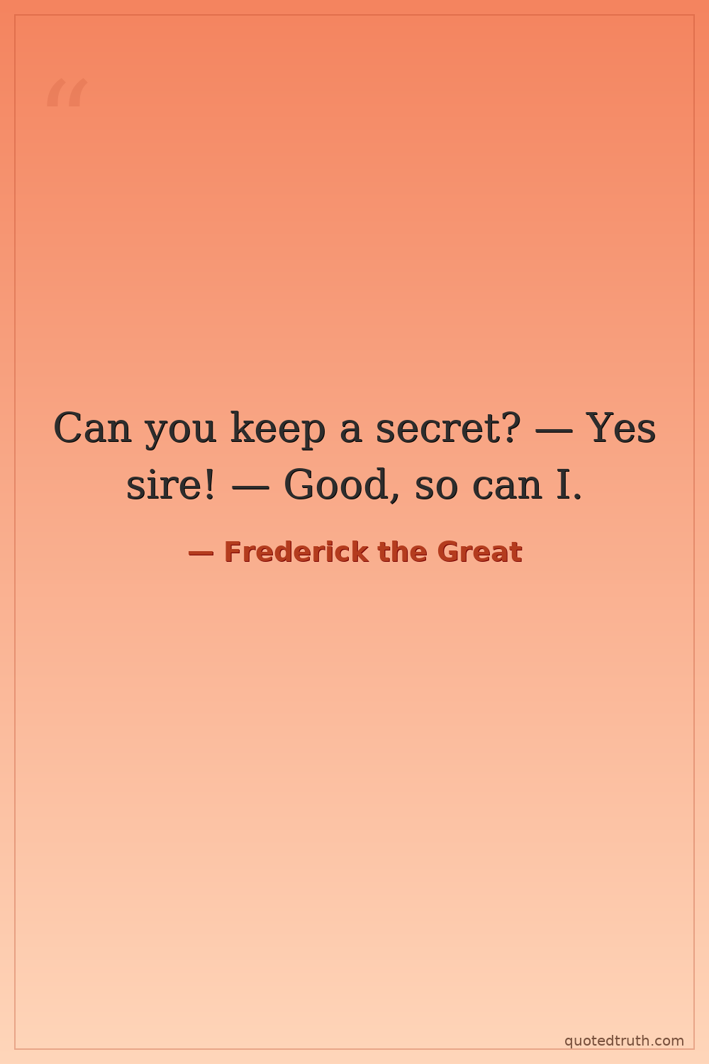 Can you keep a secret? — Yes sire! — Good, so can I.