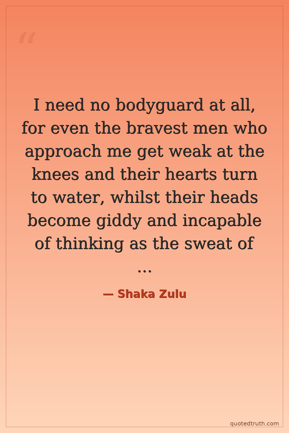 I need no bodyguard at all, for even the bravest men who approach me get weak at the knees and their hearts turn to water, whilst their heads become giddy and incapable of thinking as the sweat of fear paralyzes them.