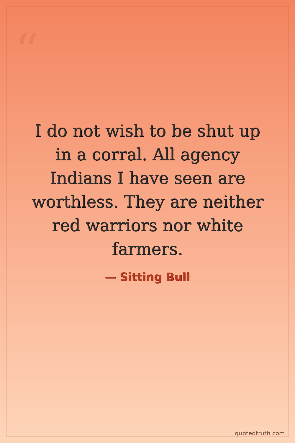 I do not wish to be shut up in a corral. All agency Indians I have seen are worthless. They are neither red warriors nor white farmers.