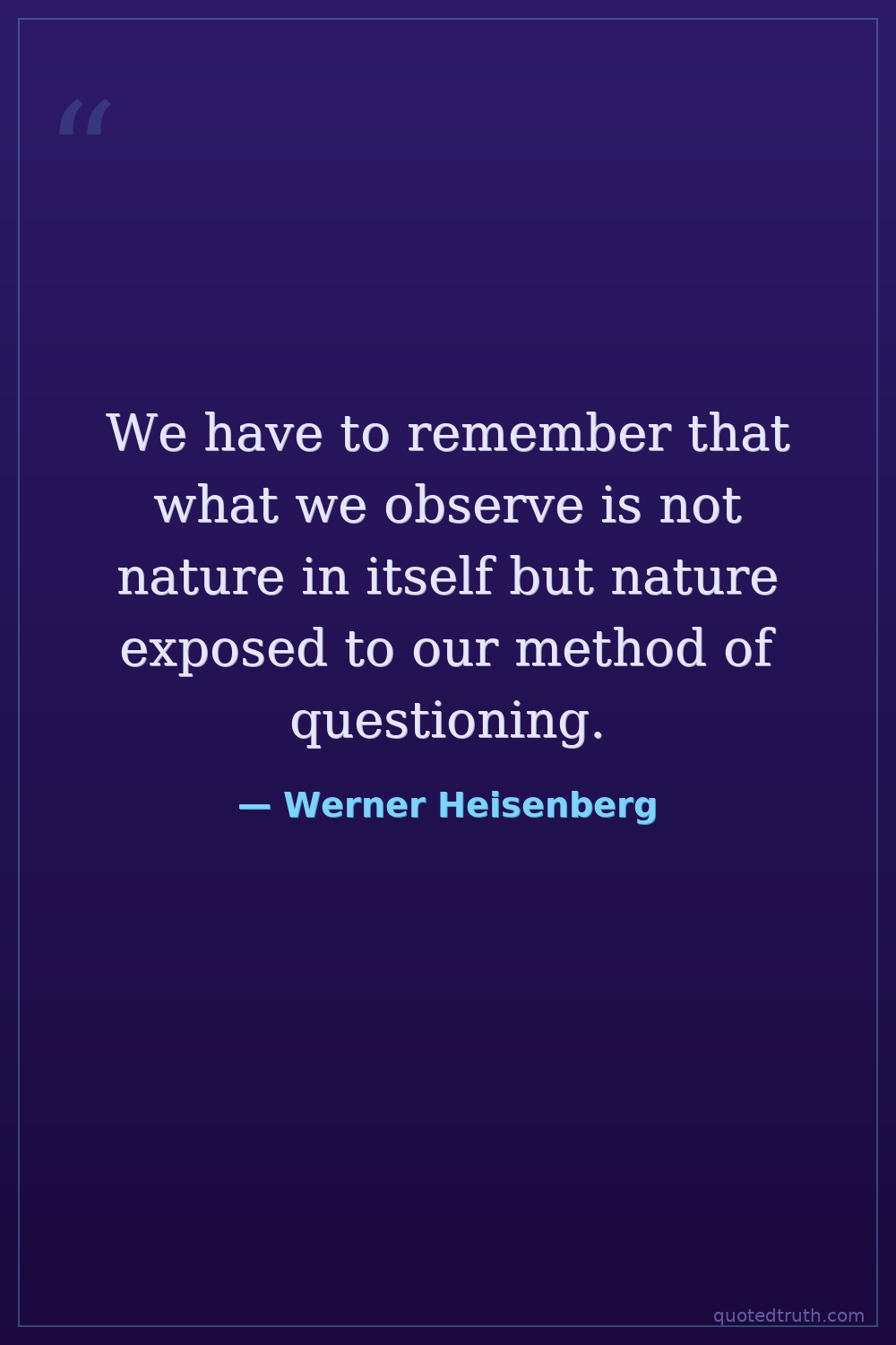 We have to remember that what we observe is not nature in itself but nature exposed to our method of questioning.