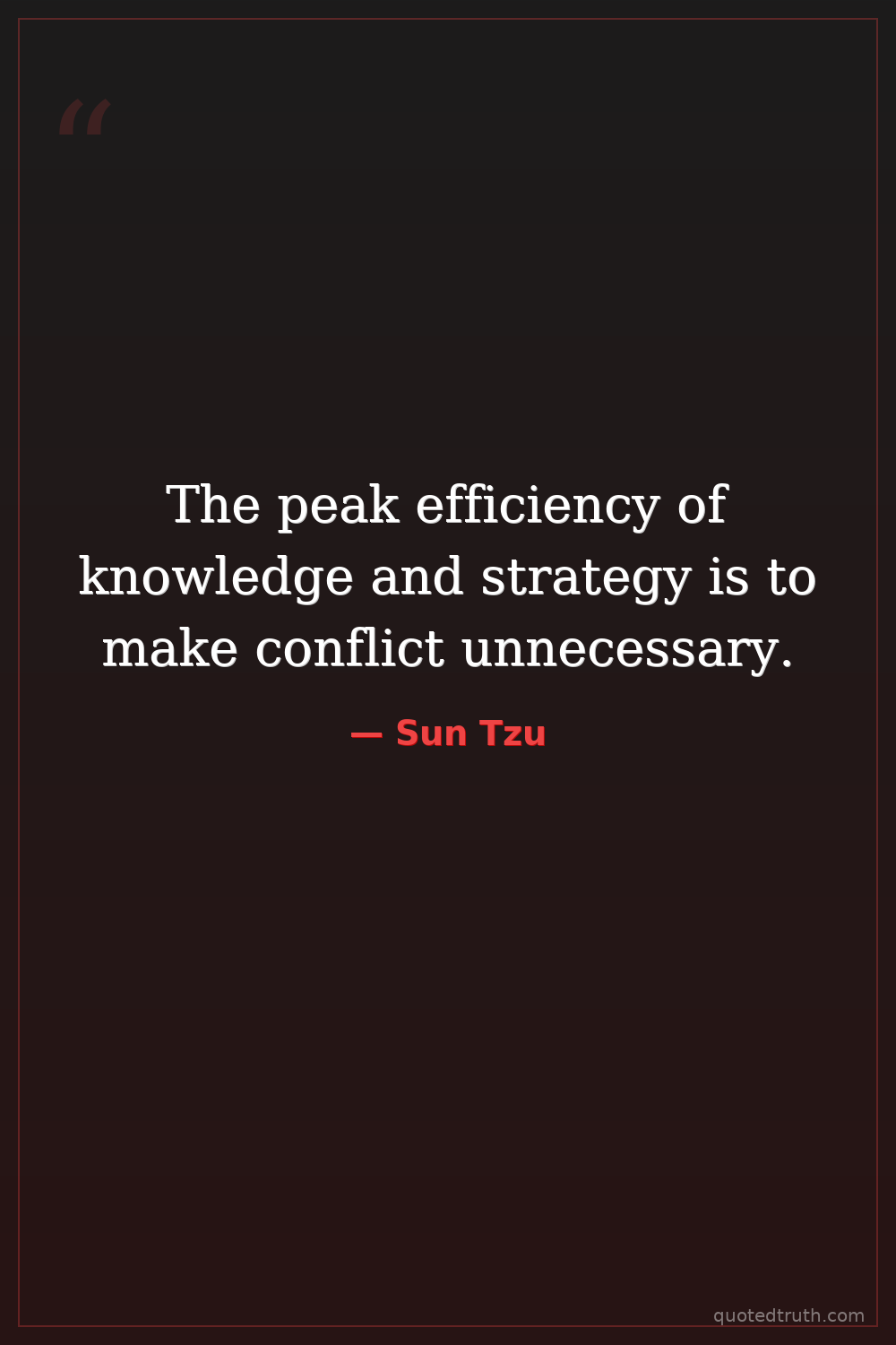 The peak efficiency of knowledge and strategy is to make conflict unnecessary.