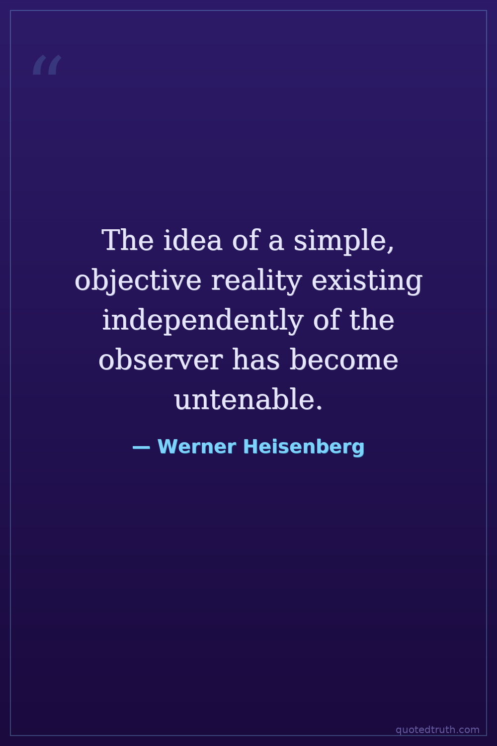 The idea of a simple, objective reality existing independently of the observer has become untenable.