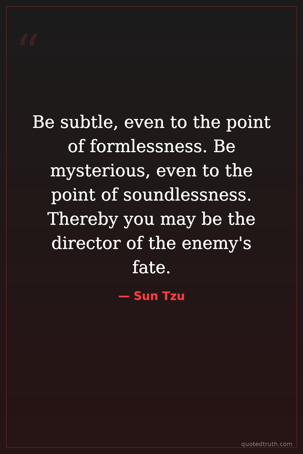 Be subtle, even to the point of formlessness. Be mysterious, even to the point of soundlessness. Thereby you may be the director of the enemy's fate.