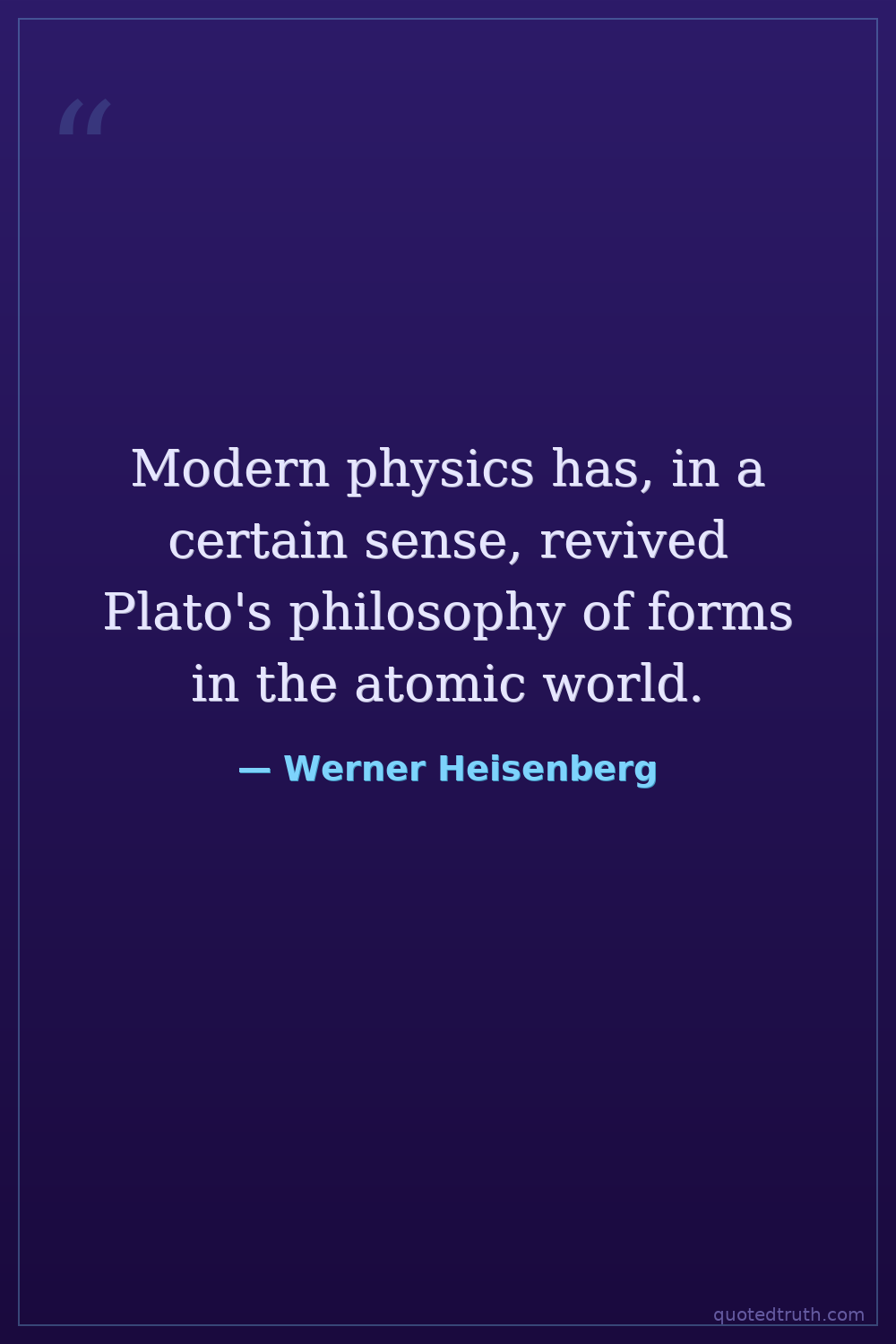 Modern physics has, in a certain sense, revived Plato's philosophy of forms in the atomic world.