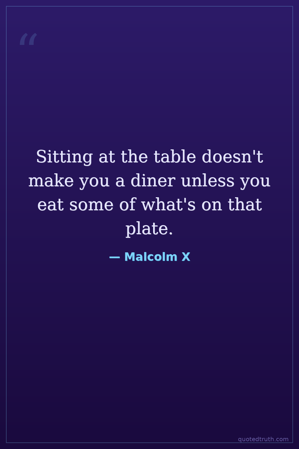 Sitting at the table doesn't make you a diner unless you eat some of what's on that plate.