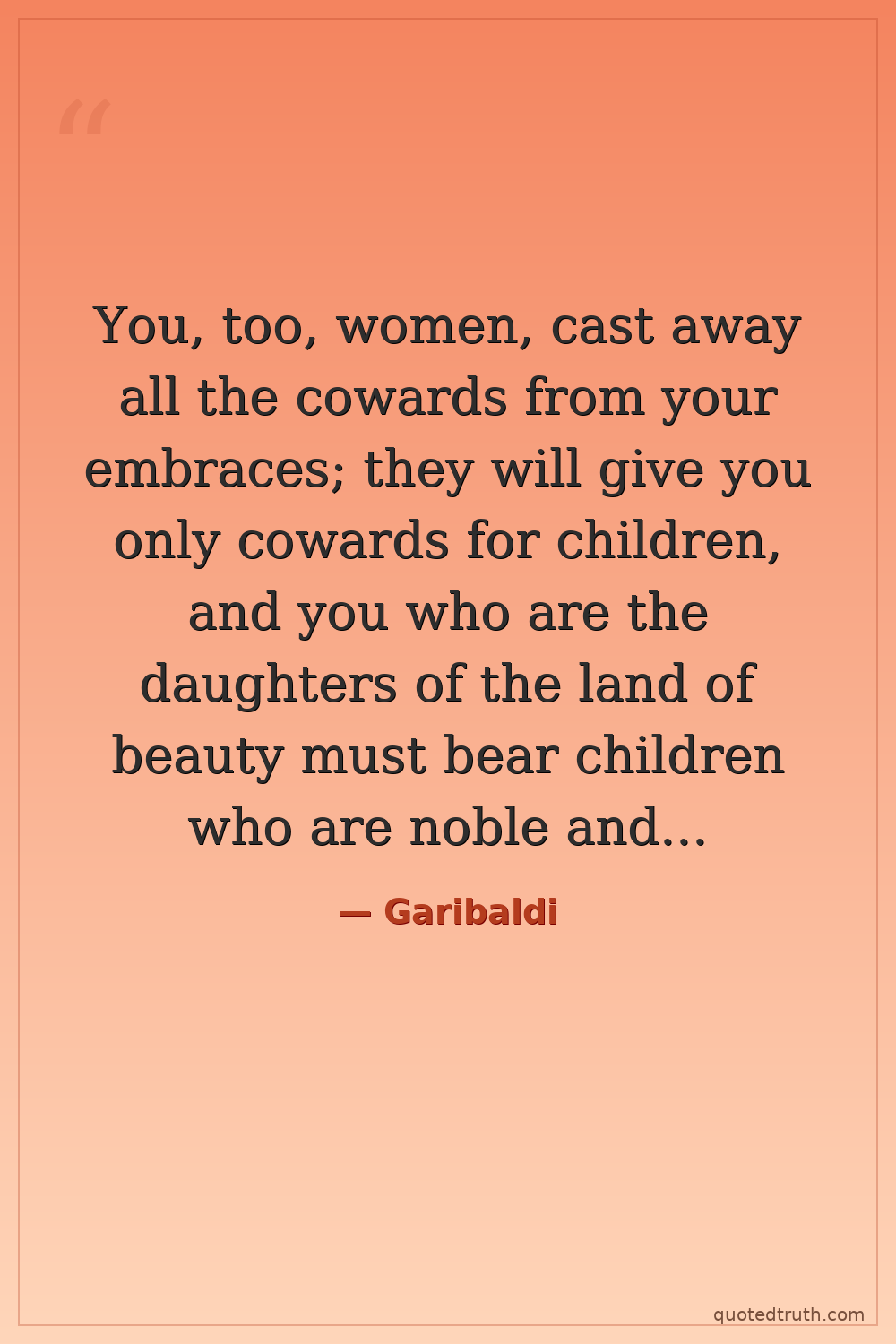 You, too, women, cast away all the cowards from your embraces; they will give you only cowards for children, and you who are the daughters of the land of beauty must bear children who are noble and brave.
