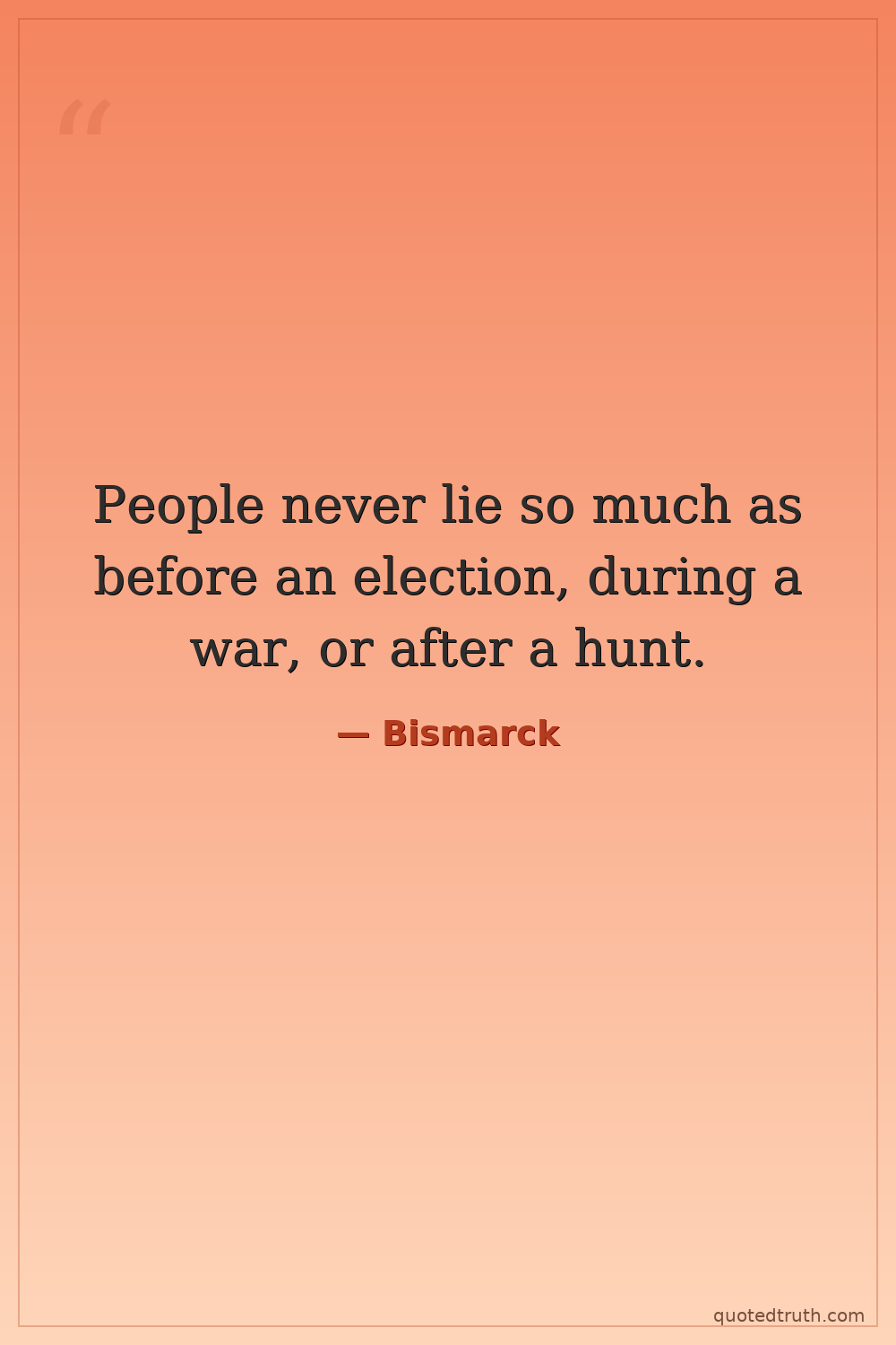 People never lie so much as before an election, during a war, or after a hunt.