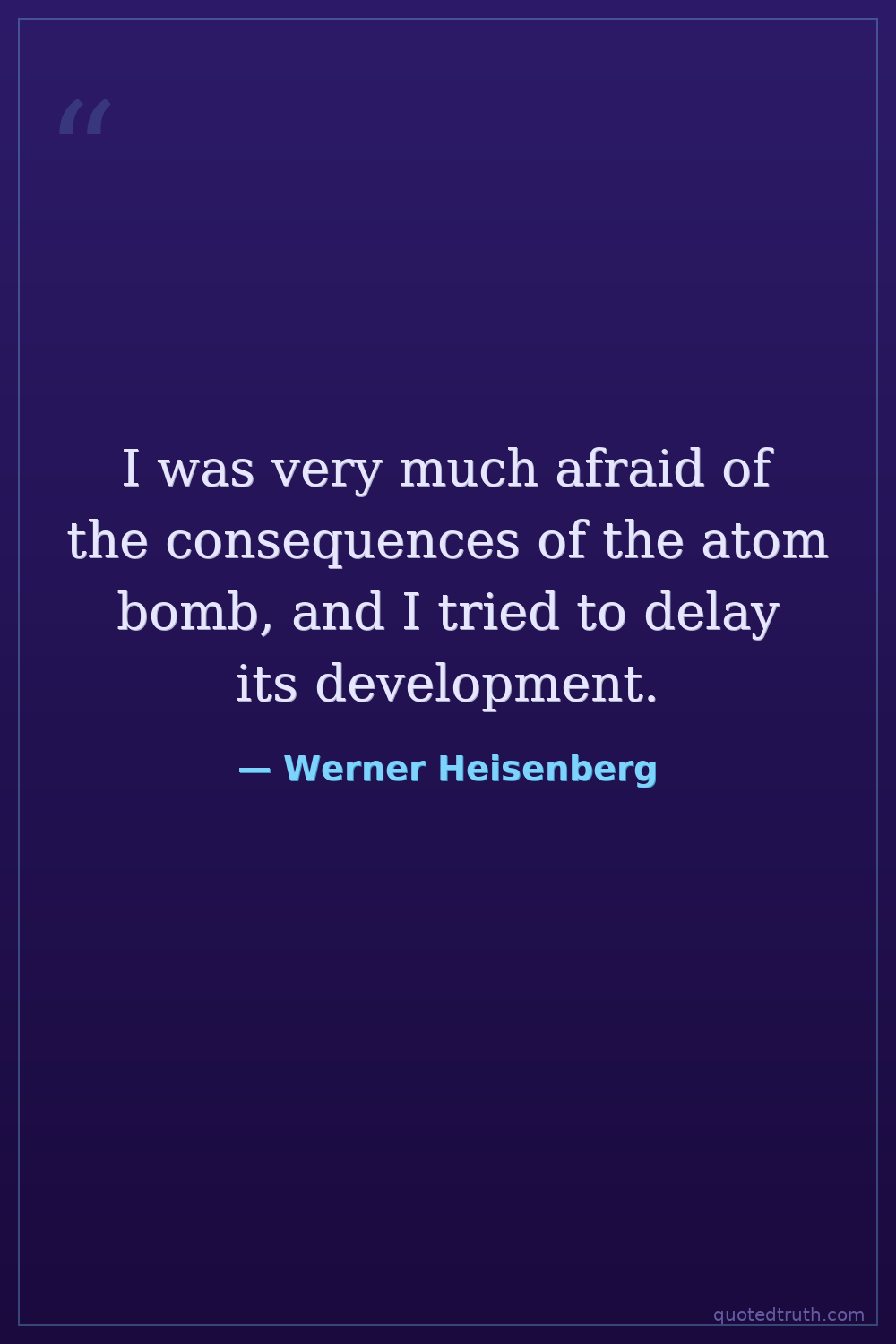 I was very much afraid of the consequences of the atom bomb, and I tried to delay its development.