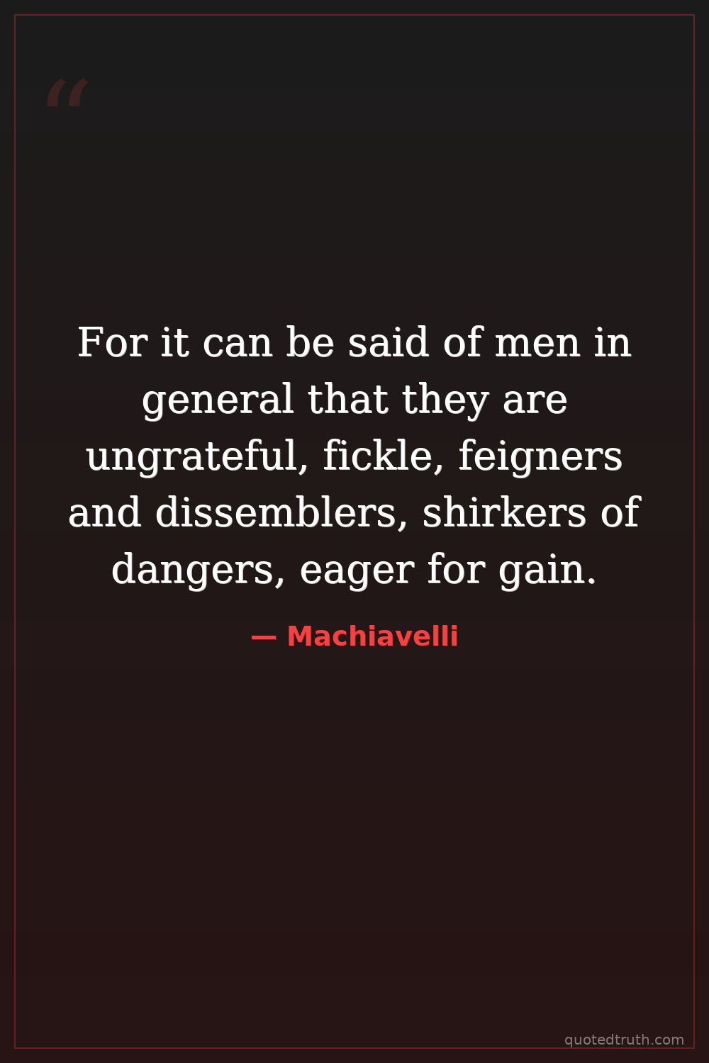 For it can be said of men in general that they are ungrateful, fickle, feigners and dissemblers, shirkers of dangers, eager for gain.