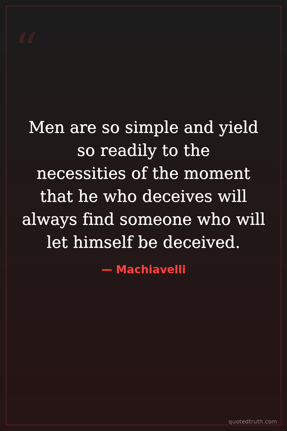 Men are so simple and yield so readily to the necessities of the moment that he who deceives will always find someone who will let himself be deceived.