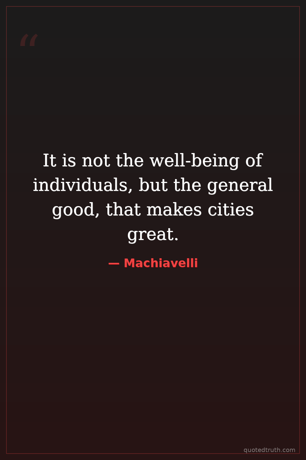 It is not the well-being of individuals, but the general good, that makes cities great.