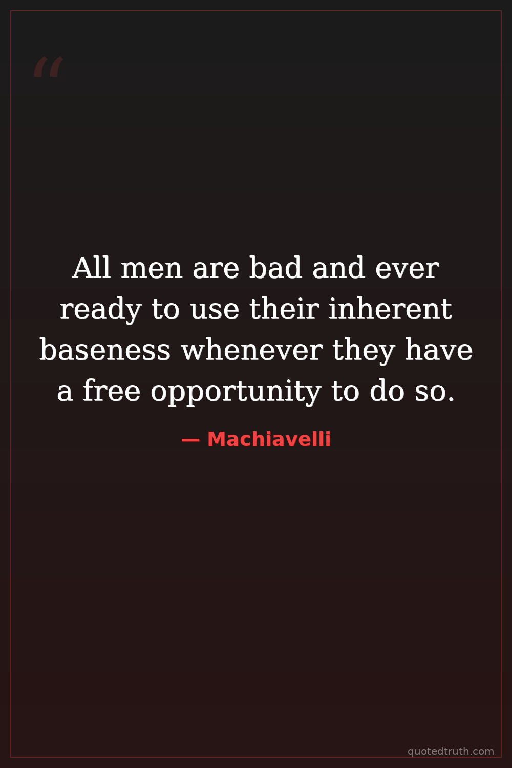 All men are bad and ever ready to use their inherent baseness whenever they have a free opportunity to do so.