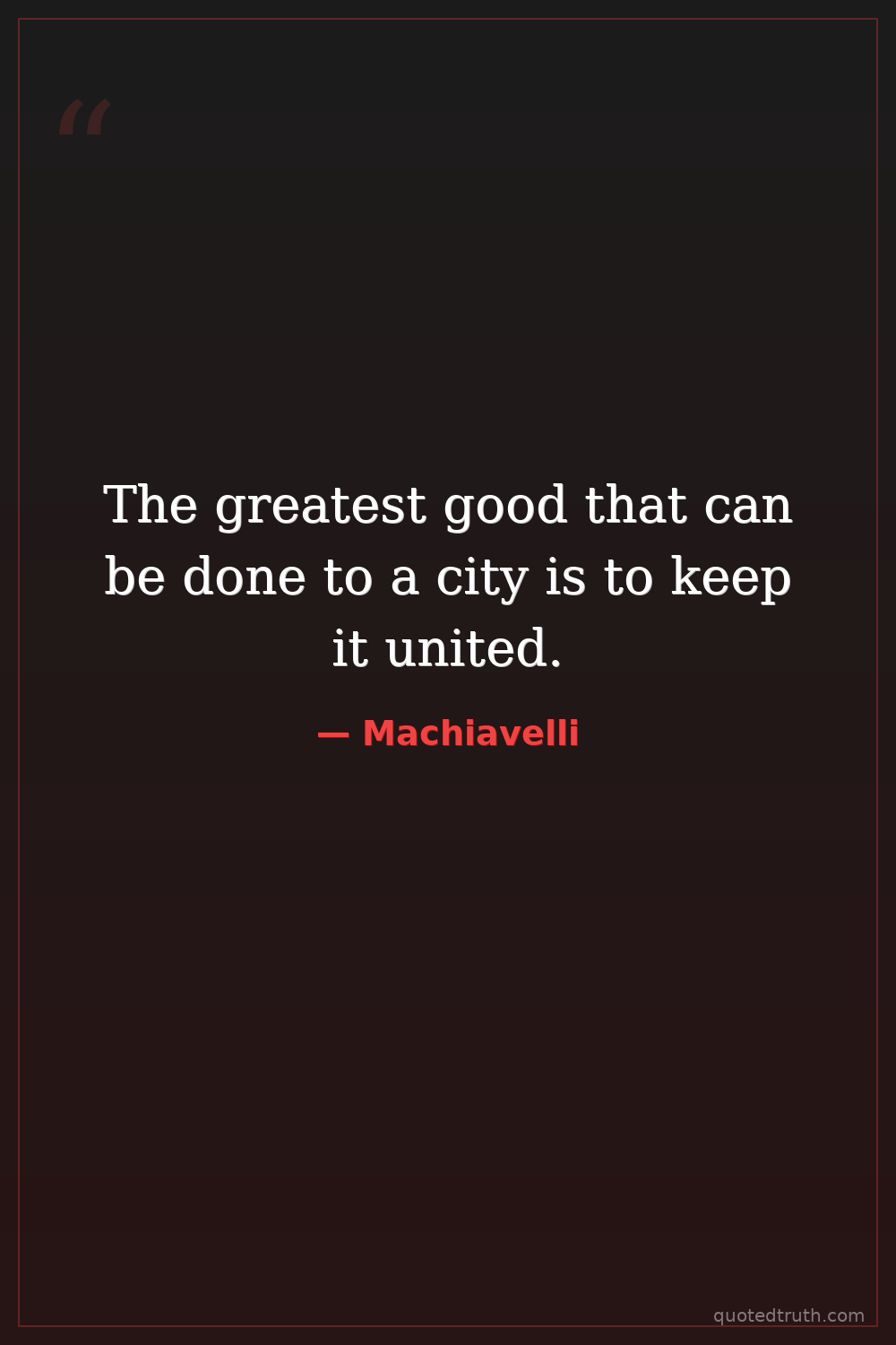 The greatest good that can be done to a city is to keep it united.