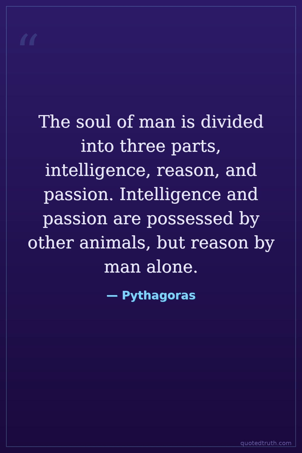 The soul of man is divided into three parts, intelligence, reason, and passion. Intelligence and passion are possessed by other animals, but reason by man alone.