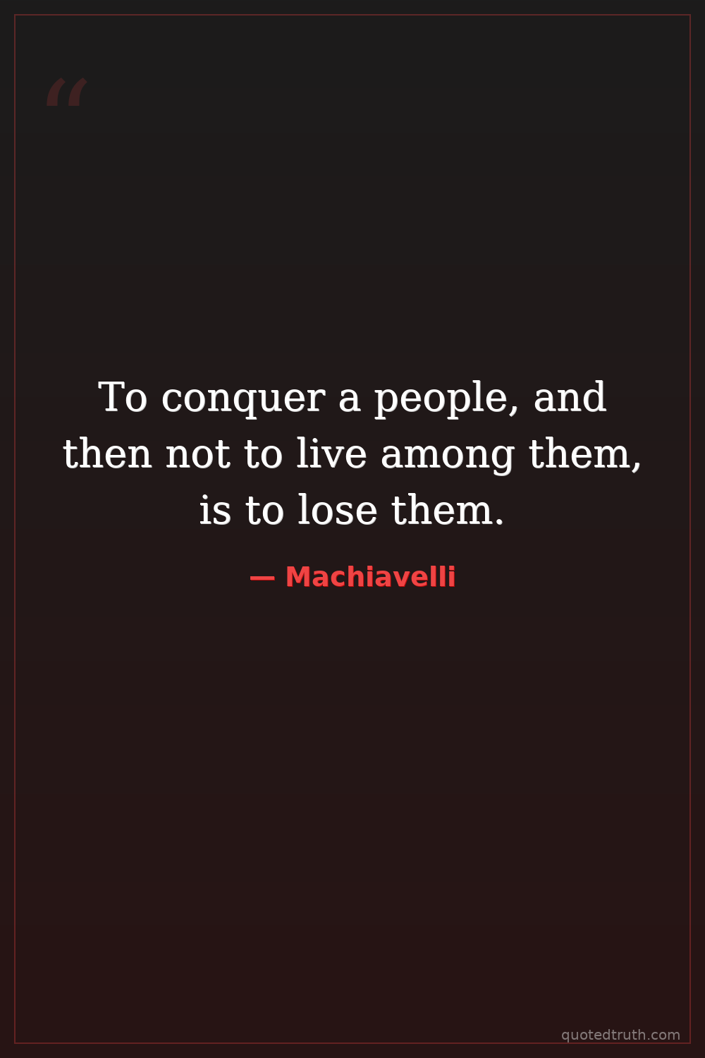 Controversial"Whence it may be noted that in taking a state the conqueror must arrange to commit all injuries at once and follow them up every day, so that by not repeating them he may be able to assure men and win…"