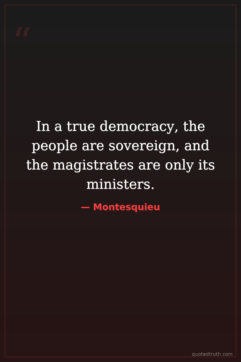 In a true democracy, the people are sovereign, and the magistrates are only its ministers.
