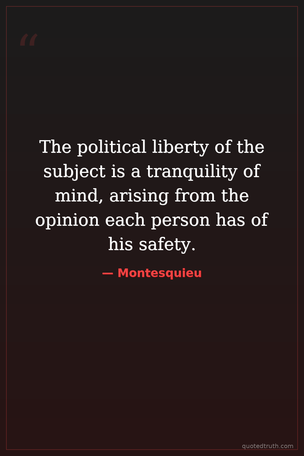 The political liberty of the subject is a tranquility of mind, arising from the opinion each person has of his safety.