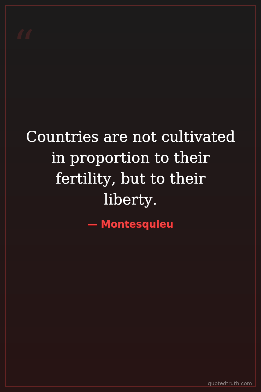 Countries are not cultivated in proportion to their fertility, but to their liberty.