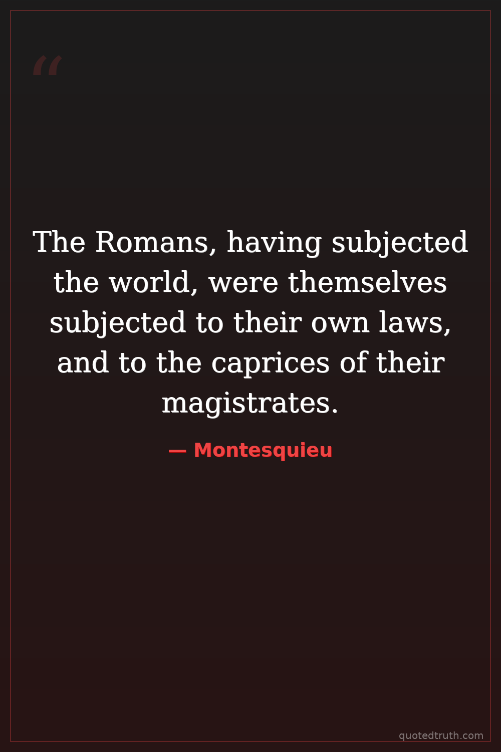 The Romans, having subjected the world, were themselves subjected to their own laws, and to the caprices of their magistrates.
