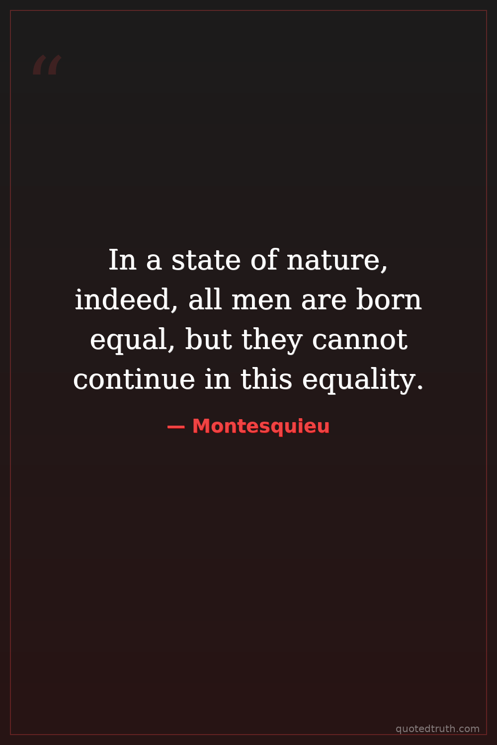 In a state of nature, indeed, all men are born equal, but they cannot continue in this equality.