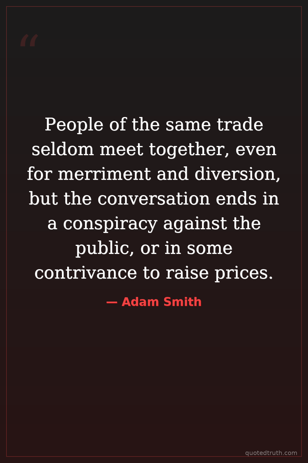 People of the same trade seldom meet together, even for merriment and diversion, but the conversation ends in a conspiracy against the public, or in some contrivance to raise prices.