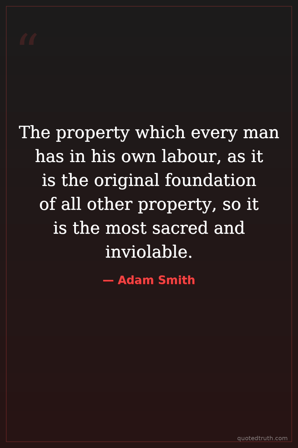 The property which every man has in his own labour, as it is the original foundation of all other property, so it is the most sacred and inviolable.