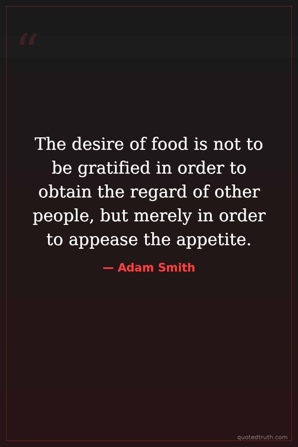 The desire of food is not to be gratified in order to obtain the regard of other people, but merely in order to appease the appetite.