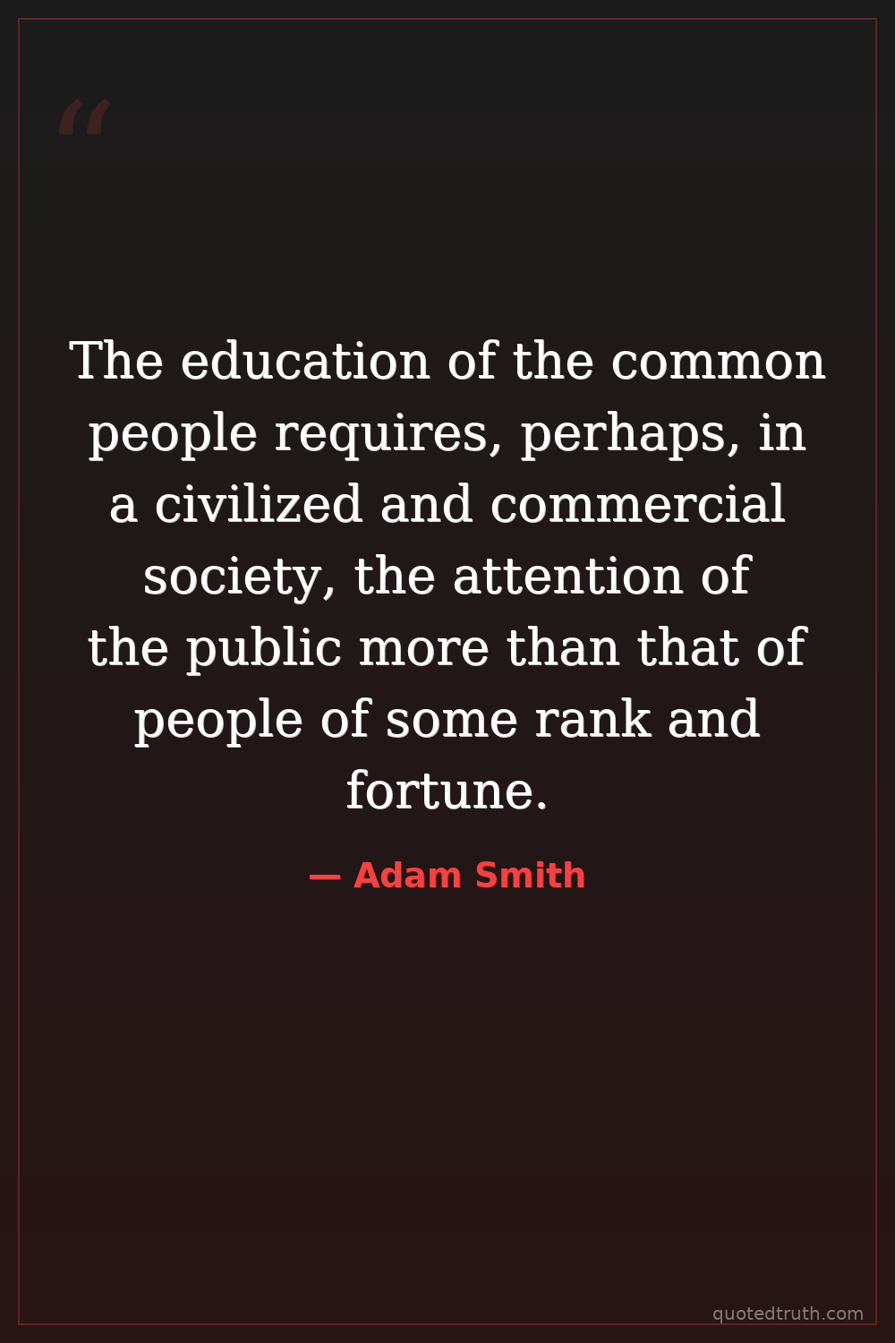 The education of the common people requires, perhaps, in a civilized and commercial society, the attention of the public more than that of people of some rank and fortune.