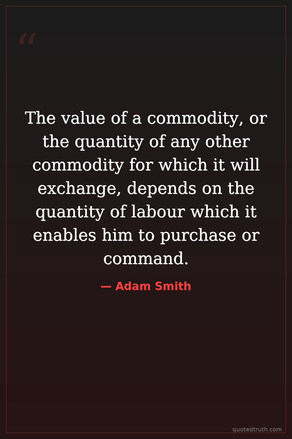 The value of a commodity, or the quantity of any other commodity for which it will exchange, depends on the quantity of labour which it enables him to purchase or command.