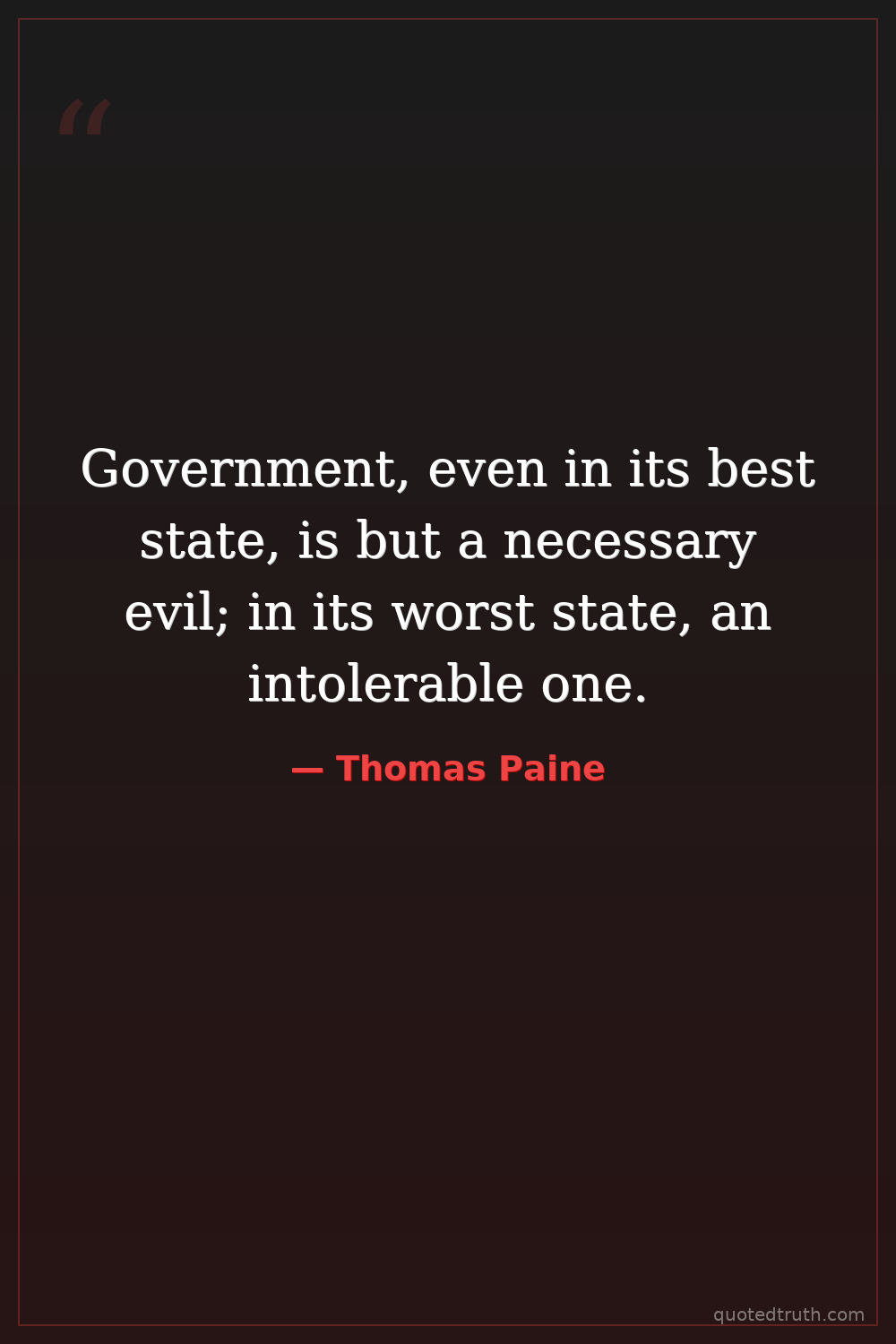 Government, even in its best state, is but a necessary evil; in its worst state, an intolerable one.
