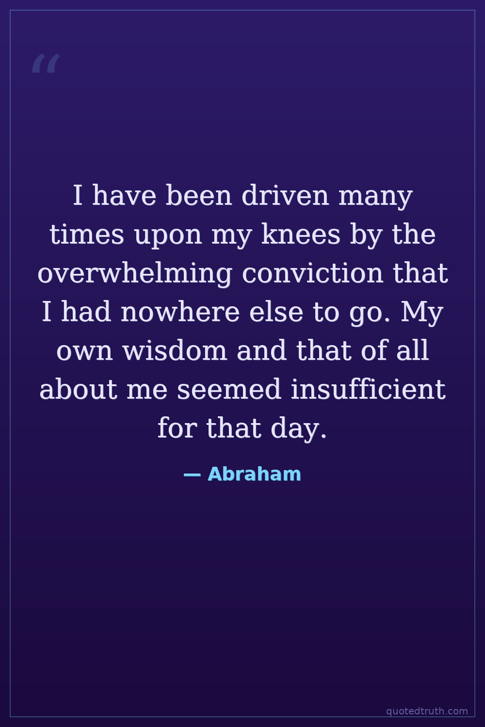 I have been driven many times upon my knees by the overwhelming conviction that I had nowhere else to go. My own wisdom and that of all about me seemed insufficient for that day.