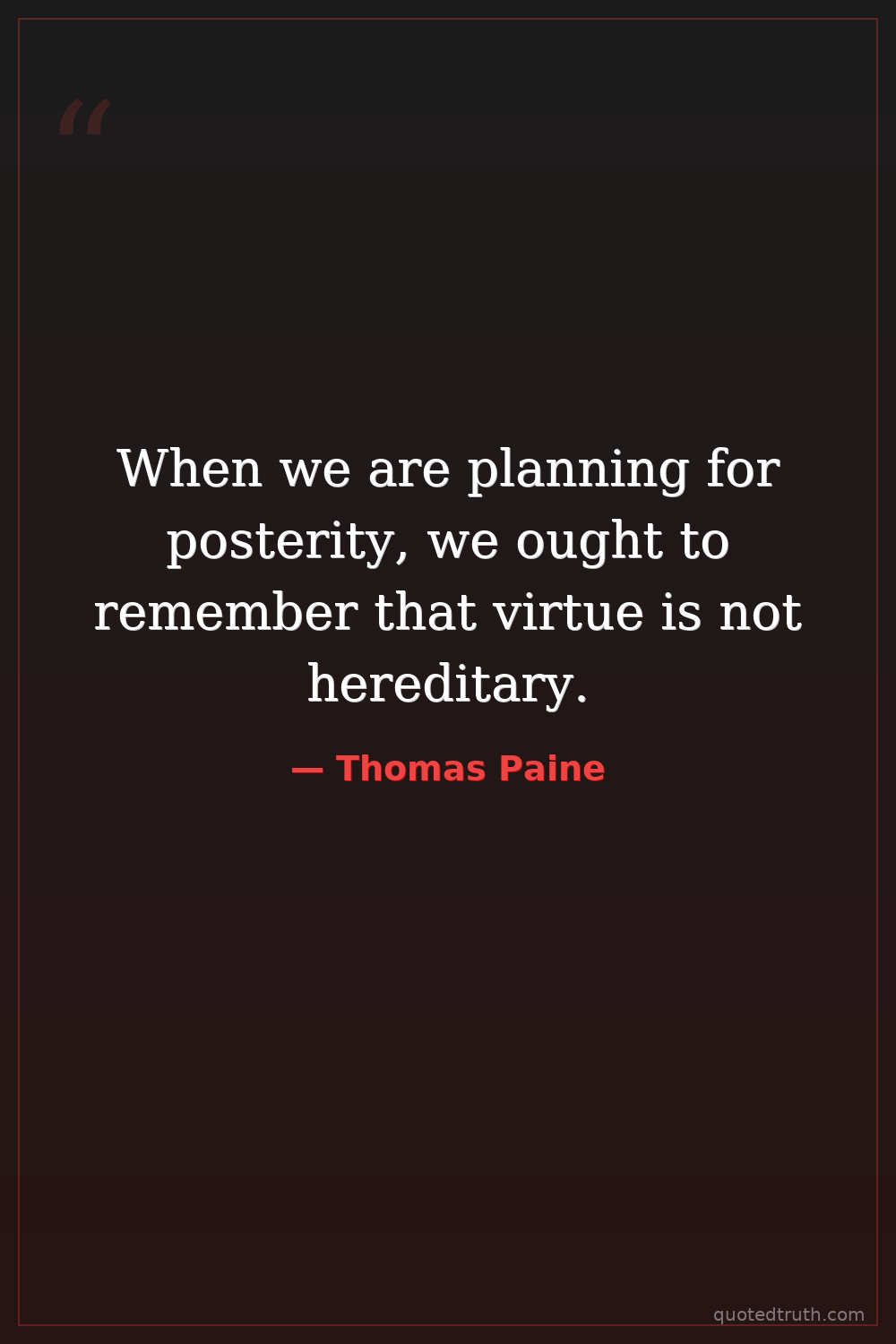 When we are planning for posterity, we ought to remember that virtue is not hereditary.