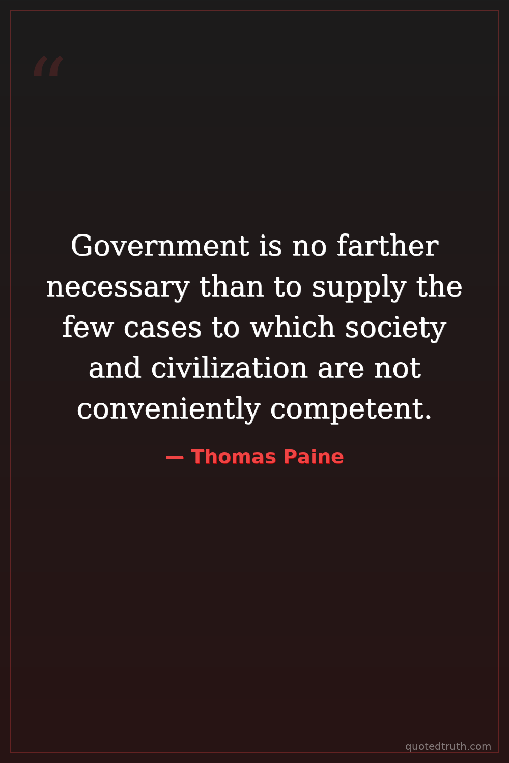 Government is no farther necessary than to supply the few cases to which society and civilization are not conveniently competent.