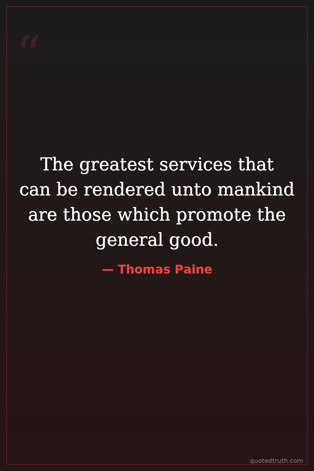 The greatest services that can be rendered unto mankind are those which promote the general good.