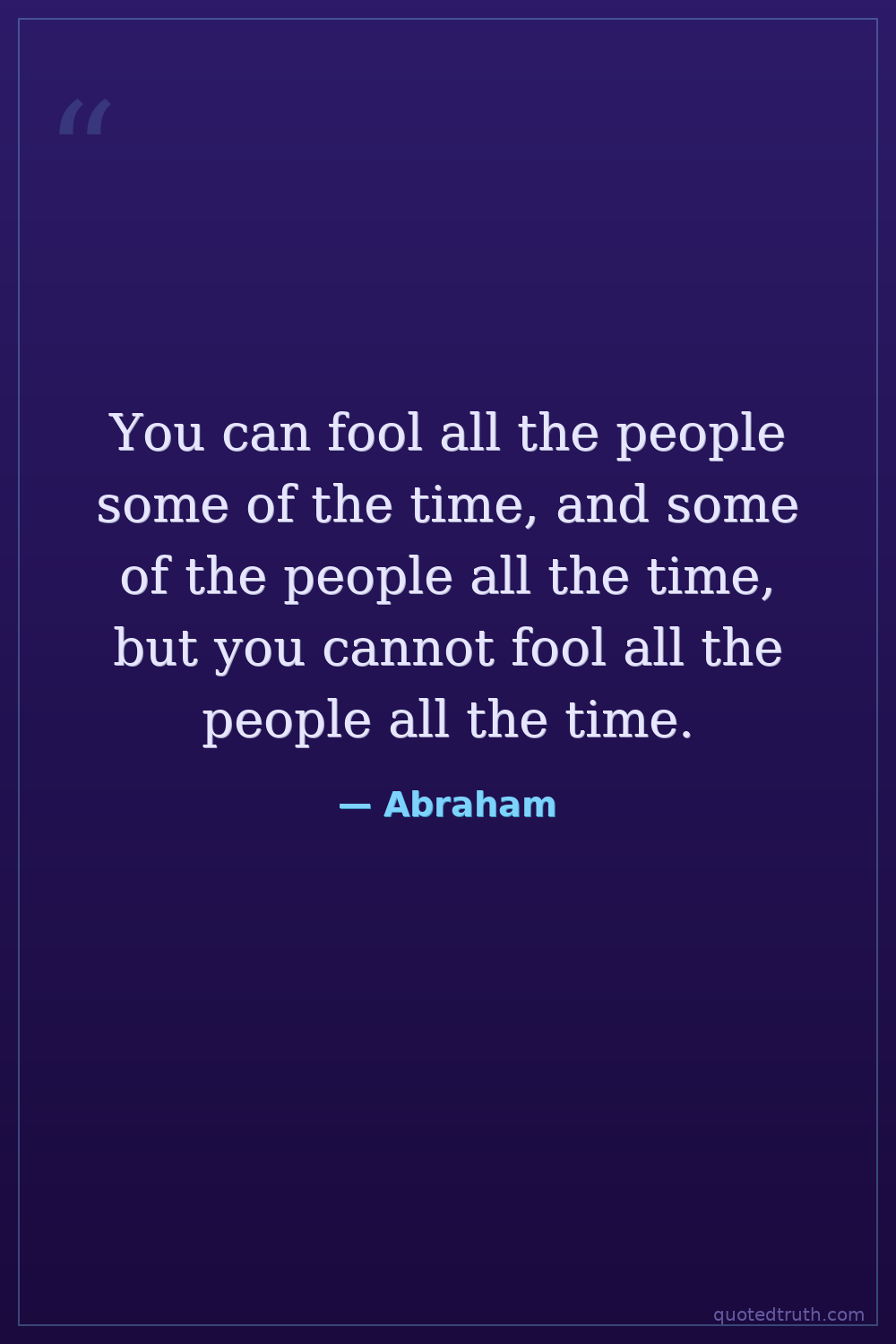 You can fool all the people some of the time, and some of the people all the time, but you cannot fool all the people all the time.