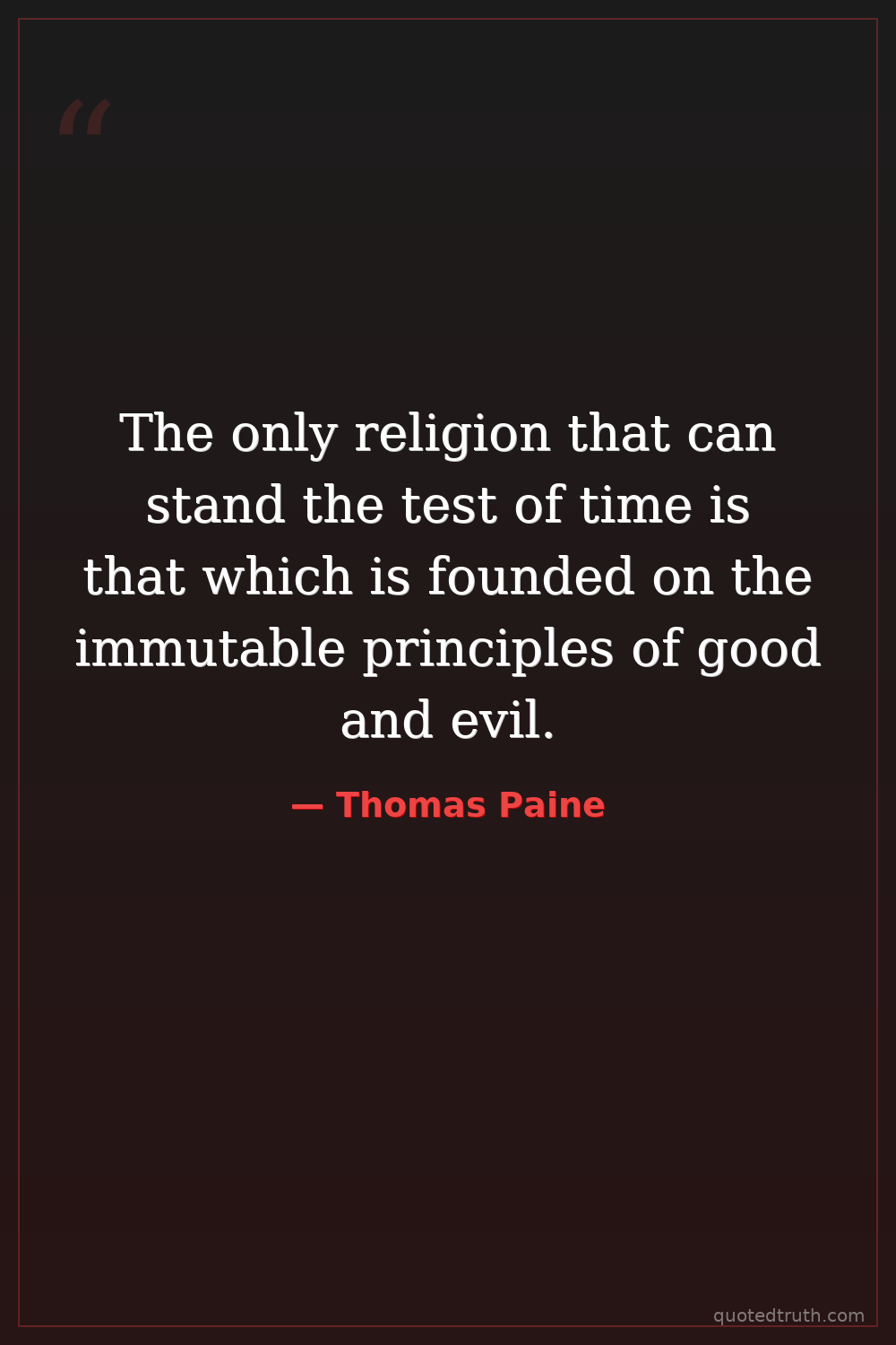 The only religion that can stand the test of time is that which is founded on the immutable principles of good and evil.