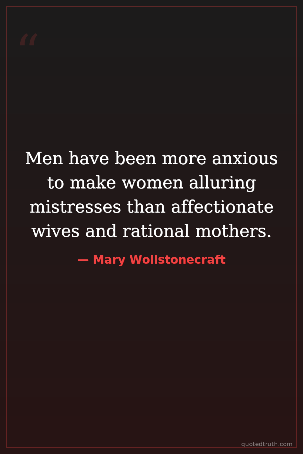 Men have been more anxious to make women alluring mistresses than affectionate wives and rational mothers.