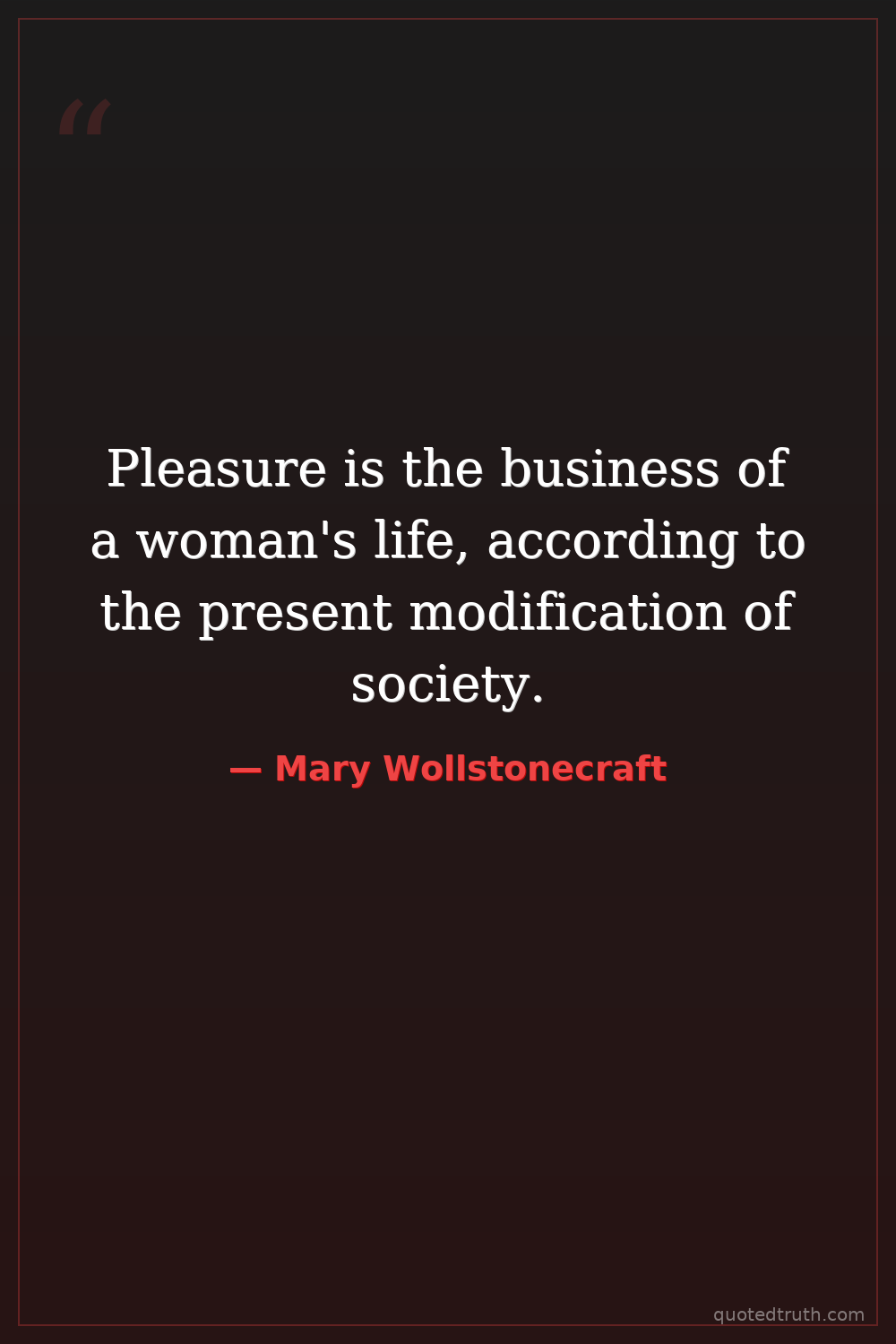 Controversial"It is time to effect a revolution in female manners – time to restore to them their lost dignity – and make them, as a part of the human species, labour by reforming themselves to reform the world."