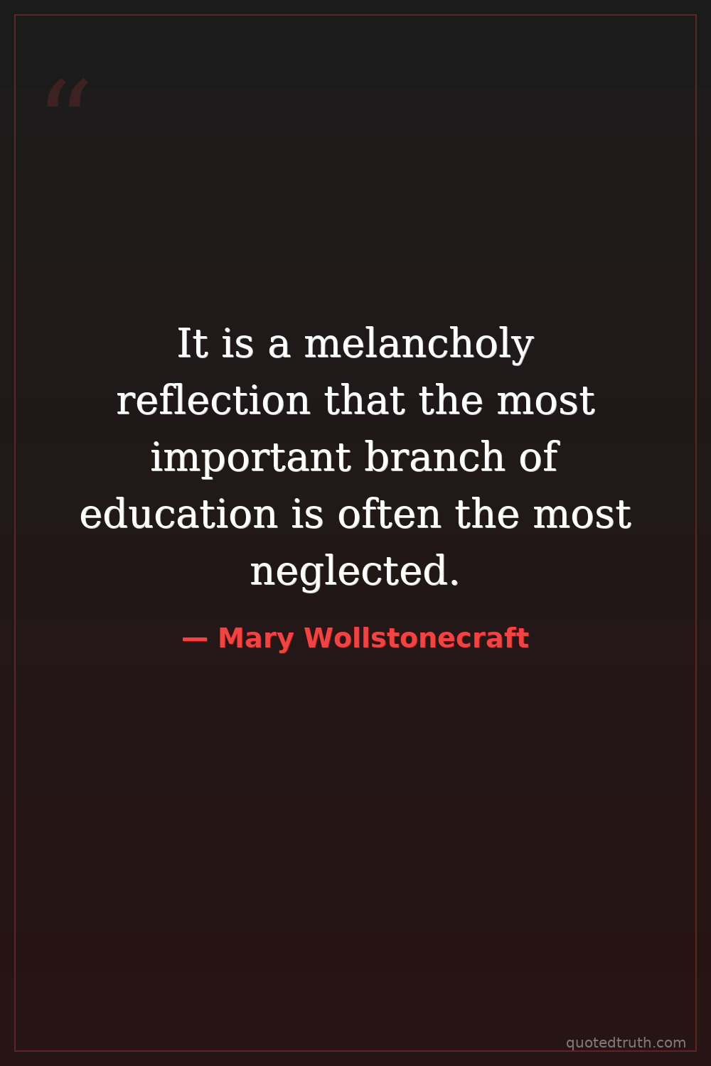 It is a melancholy reflection that the most important branch of education is often the most neglected.