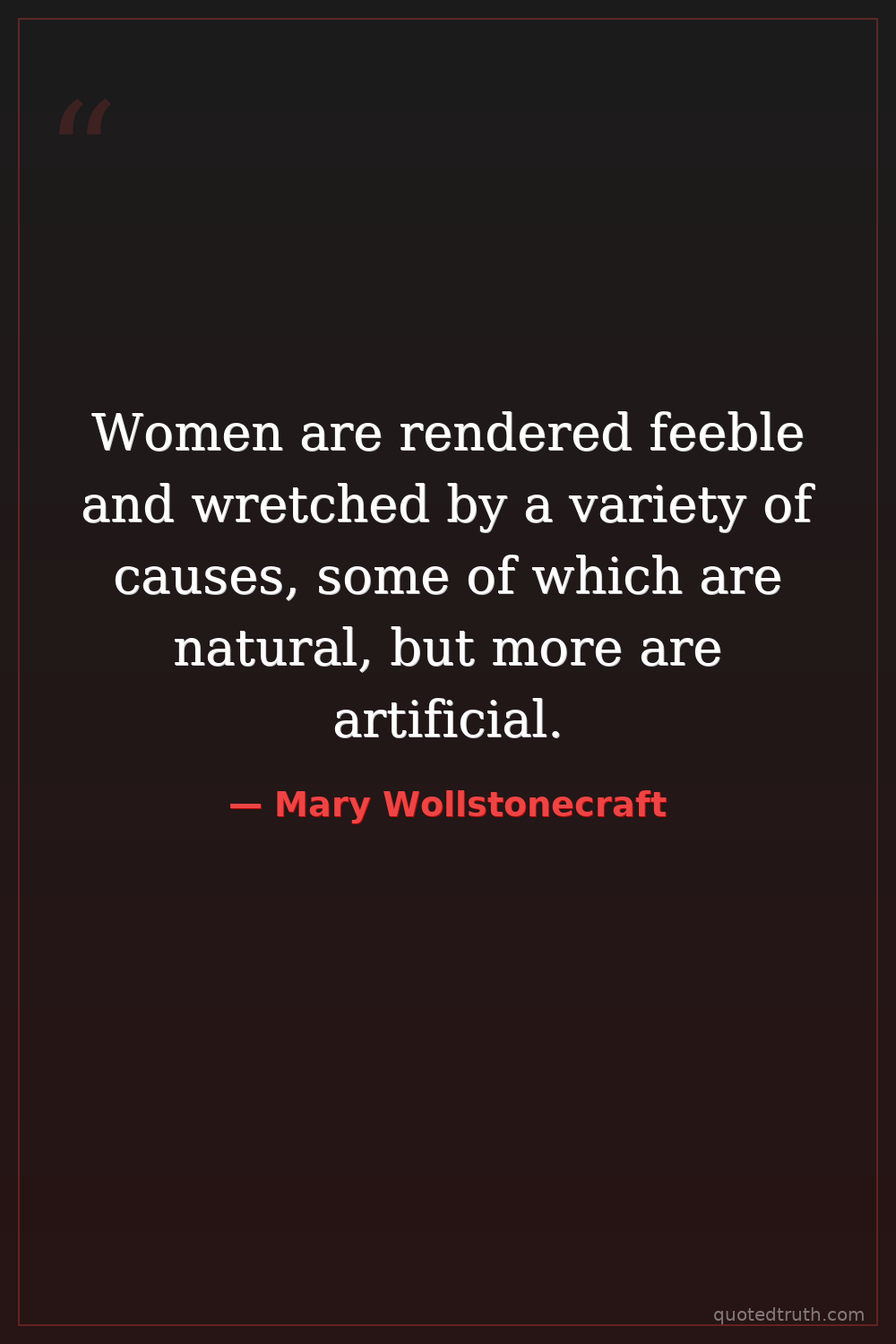 Women are rendered feeble and wretched by a variety of causes, some of which are natural, but more are artificial.